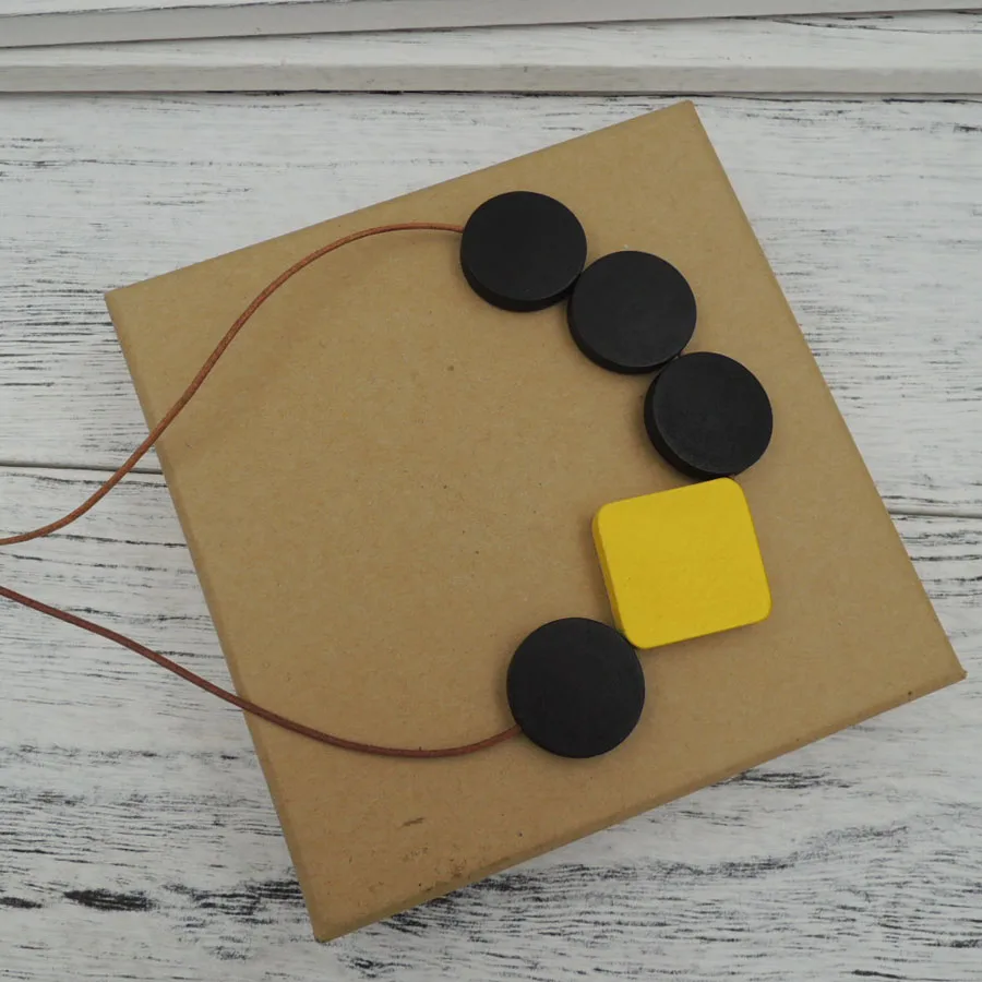 awesome lady wood geometric necklace pendant minimalist statement disk rhomb abstract yellow grey leather c