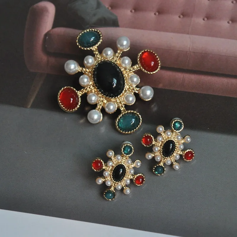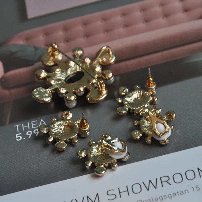 discount F.J4Z 2019 Women Luxury Stone Brooches Fashion Elegant Simulated Pearl Pins & Earrings Female Gifts