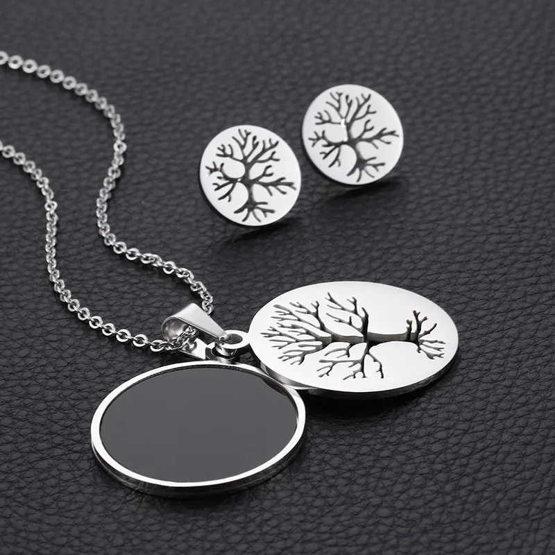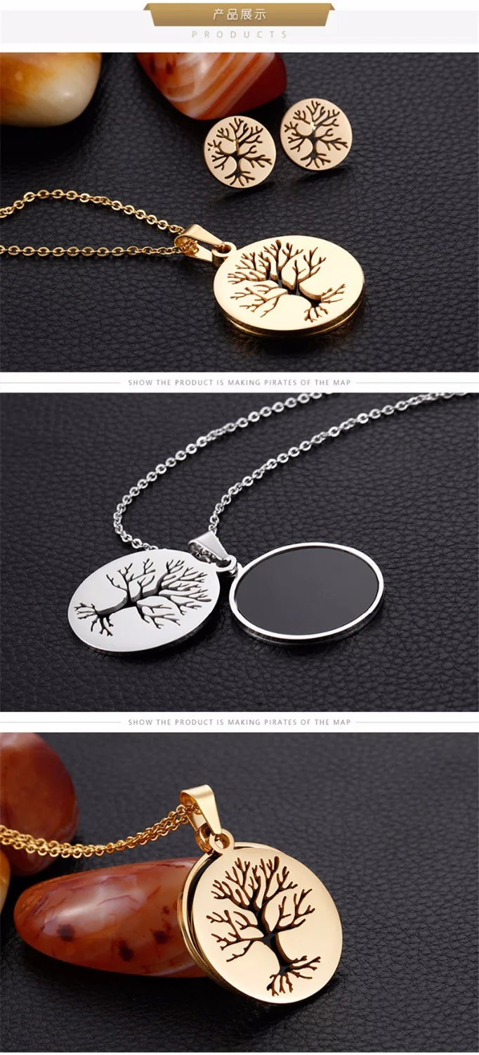 discounted High Quality Tree of Life Necklaces Earrings Sets For Women Stainless Steel Jewelry Sets Christmas