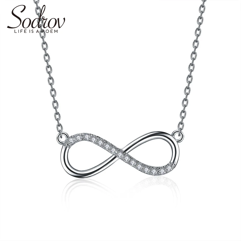 wonderful SODROV 925 Silver lucky 8 Chian Pendant Necklace For Women silver 925 jewelry Silver Necklace