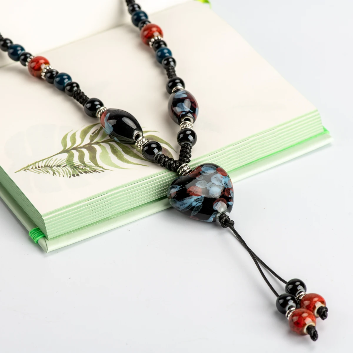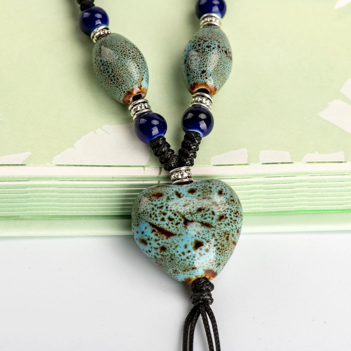 incredible Heaert Sharp Ceramics bead Necklace Memorial necklaces Chinese style Necklaces & Pendants women's g