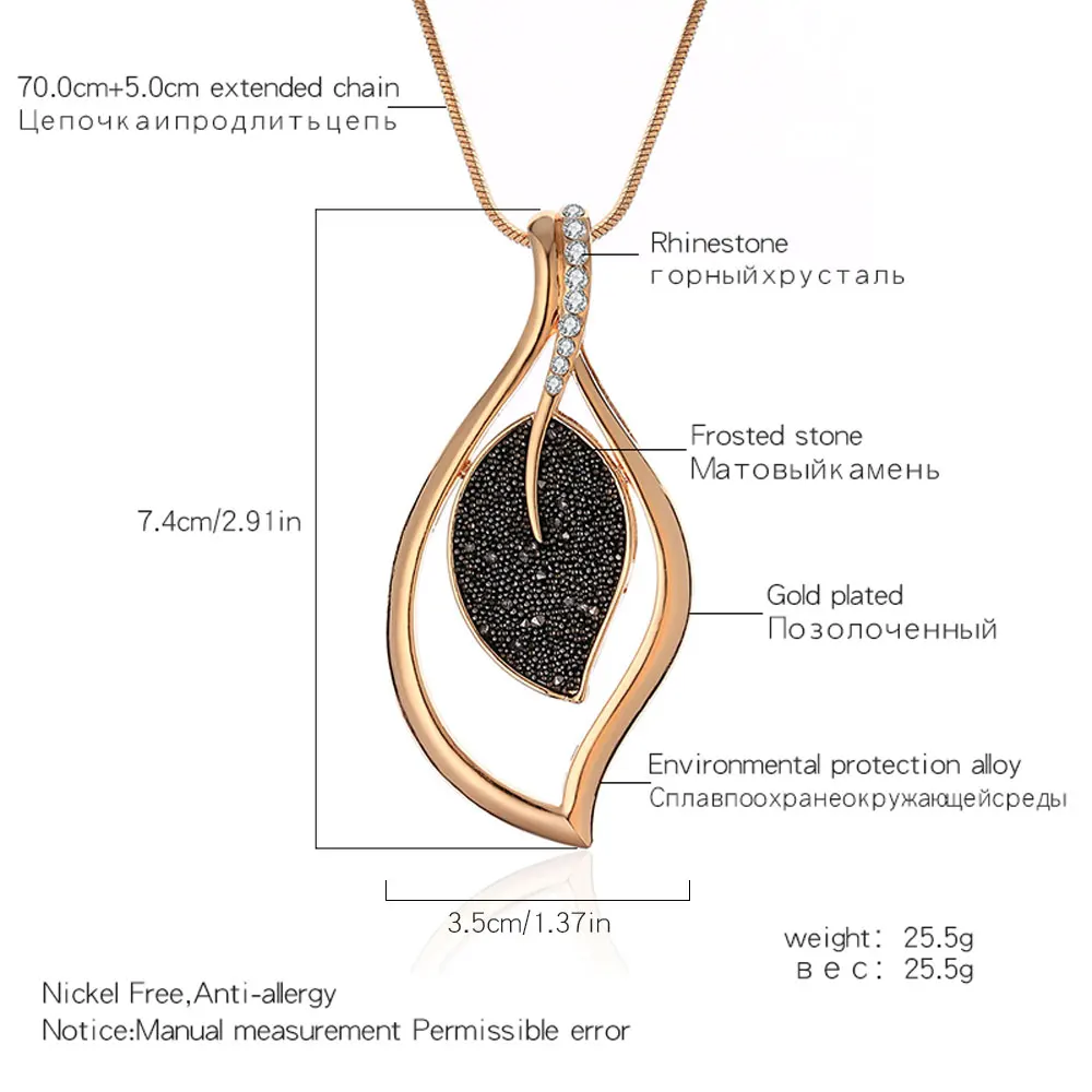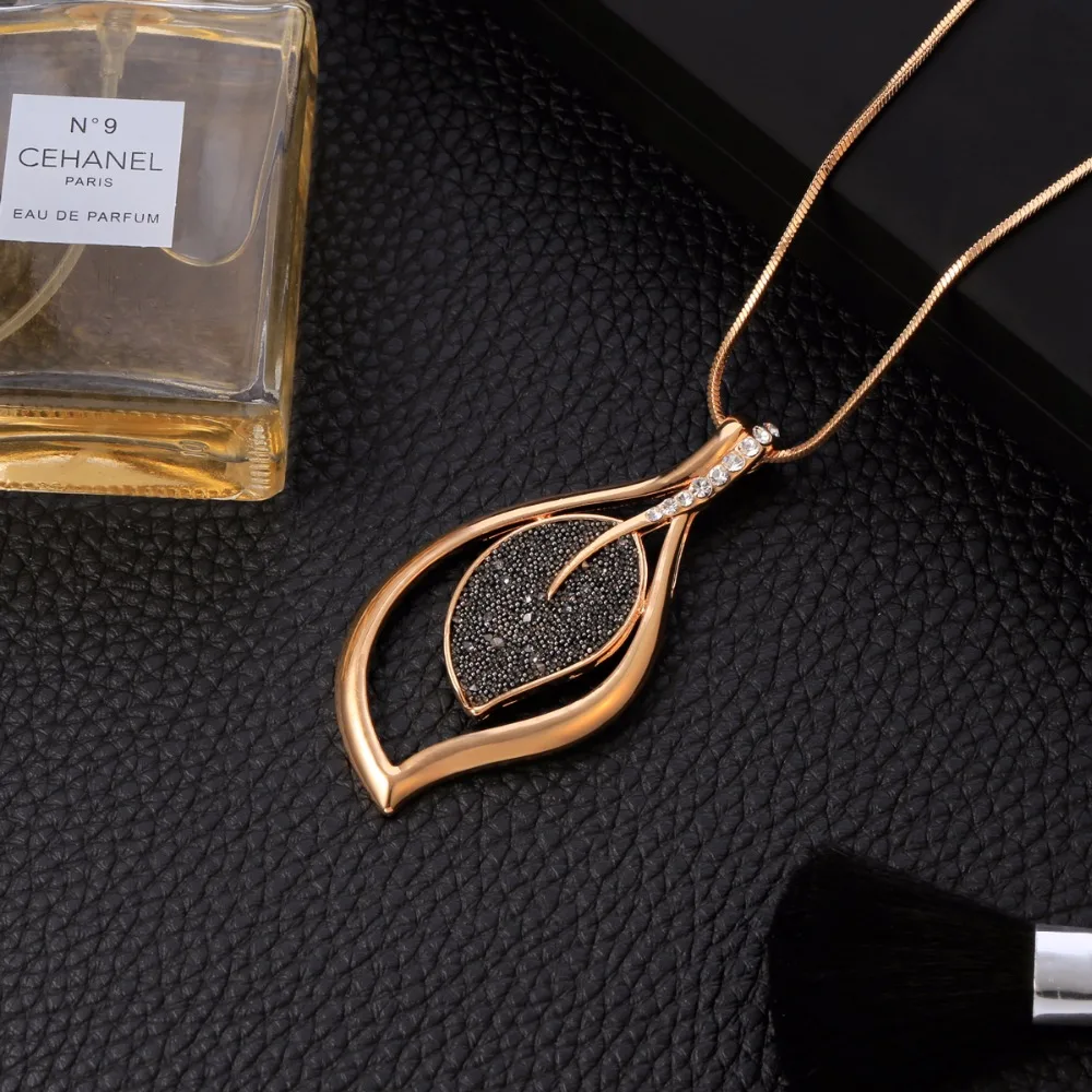 2019 Fashion New Rose Gold Color Necklace For Women Necklaces & Pendants Sweater Chain Big Leaves Pendant Statement Jewelry Gift,Luxury Black Crystal Pendant Necklace Gold Sweater Chain Big Circle Round Pendant Long Necklace Women Jewelry Accessories Gifts, Luxury Black Crystal Pendant Necklace Gold Sweater Chain Big Circle Round Pendant Long Necklace Women Jewelry Accessories Gifts