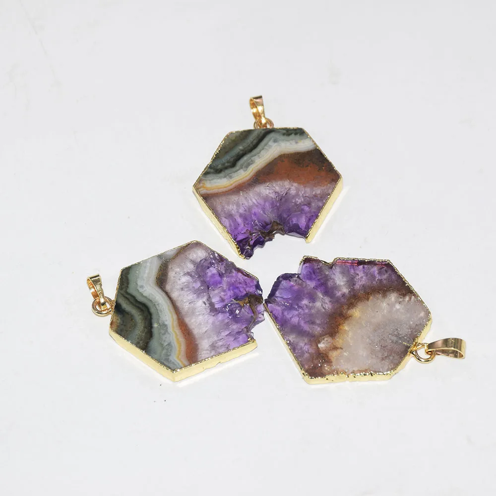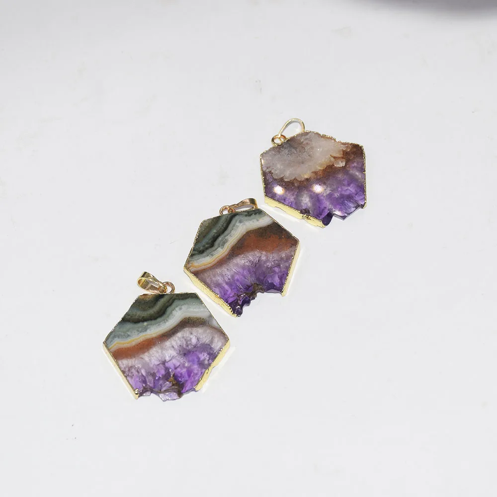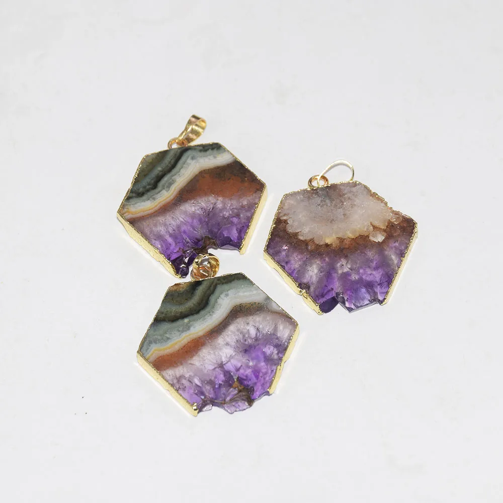 lower price Fashion Jewelry Natural slice Purple Crystal Quartz necklace pendant male 2019raw slab geode druzy
