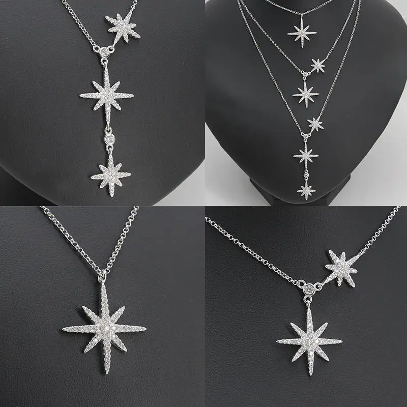 wonderful Summer Design CZ Zirconia Snoweflake Necklace Earrings Rings Bracelet Set for Women Fashion Star Pa